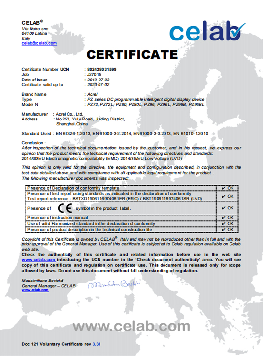 PZ DC METER CE-LVD-rapport