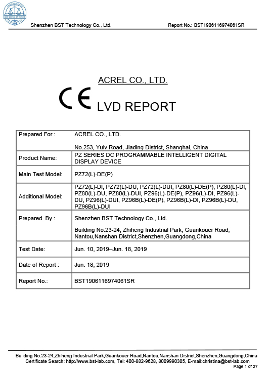 PZ AC METER CE CE-LVD-rapport