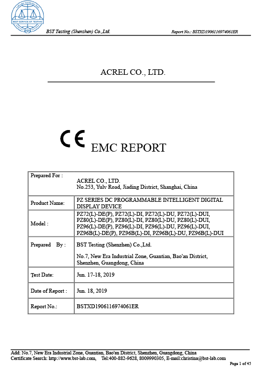 PZ AC METER CE CE-EMC-rapport