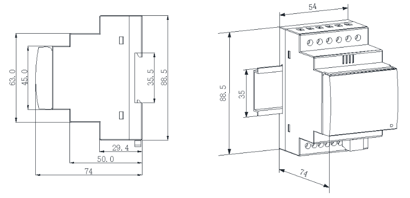 | Voeding//switching output//current input and voltage input between two two AC2kV 1min. | ||||