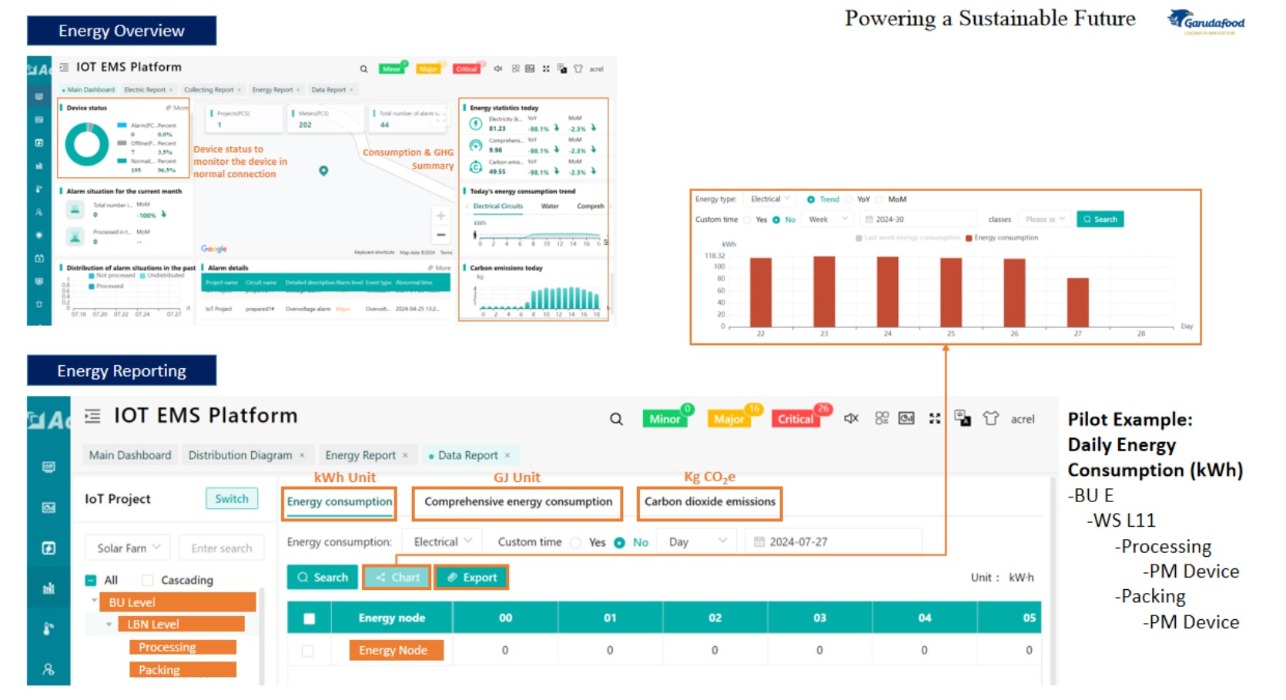 GarudaFood, een toonaangevende Indonesische fabrikant van voedingsmiddelen en dranken, produceert hoogwaardige producten voor consumenten in het hele land. Met tien fabrieken in Indonesië had het bedrijf een gecentraliseerde oplossing voor energiemonitoring nodig om het verbruik bij te houden en de operationele kosten te optimaliseren.